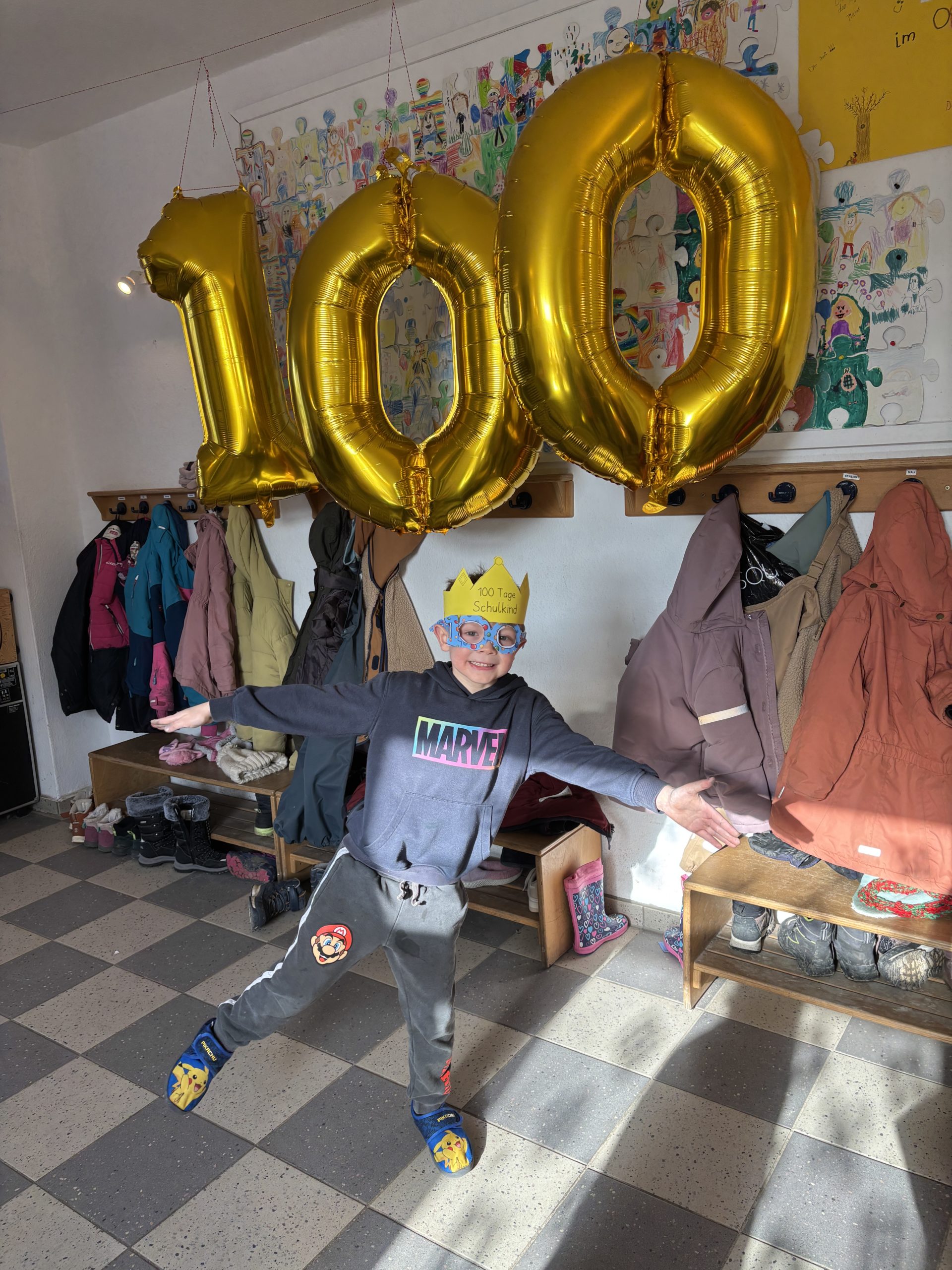 Die Kinder aus den ersten Klassen haben ihren 100ˋsten Schultag gefeiert.