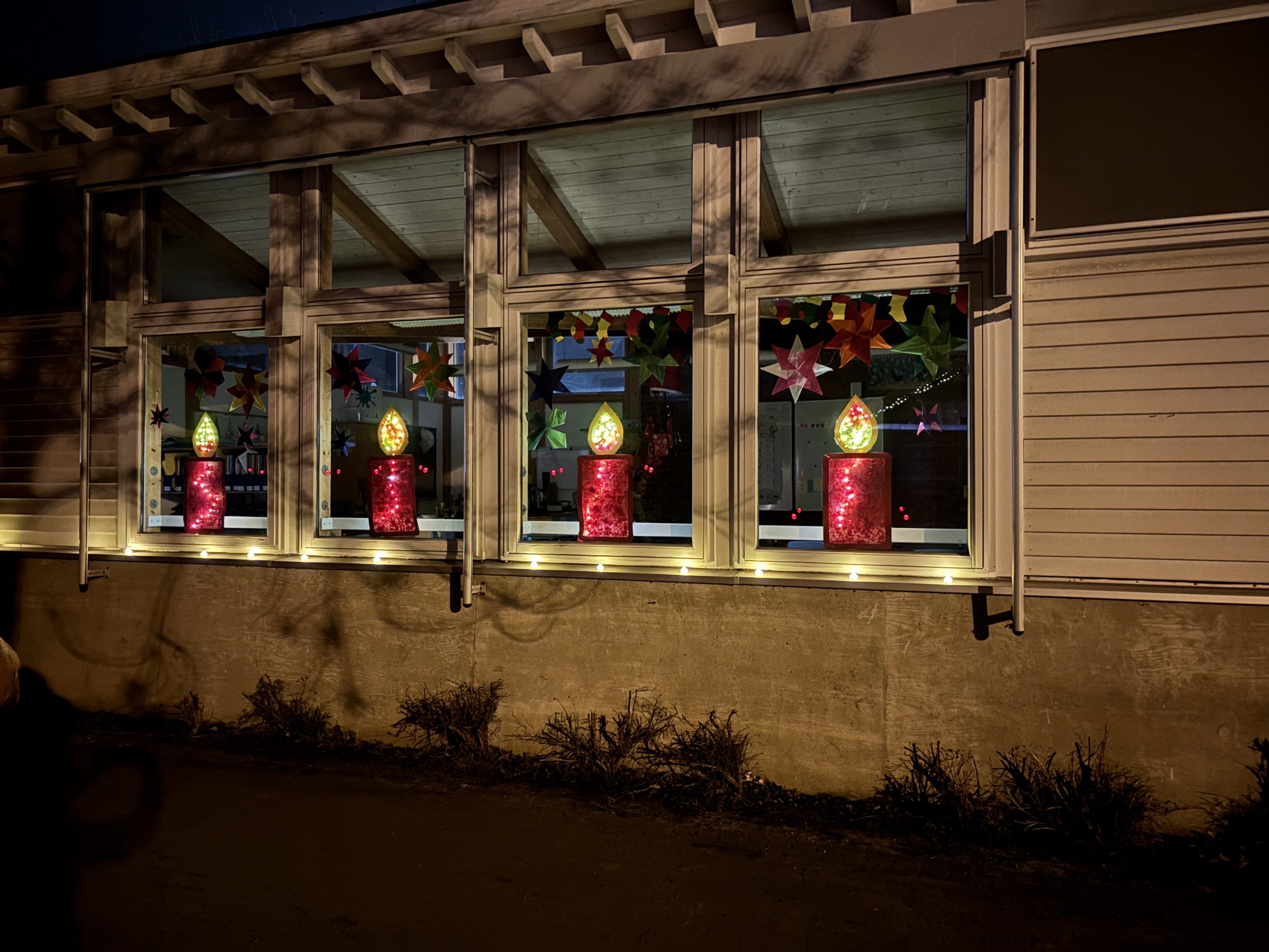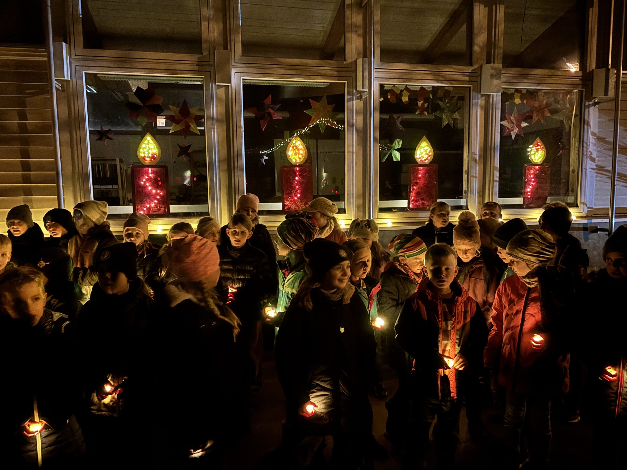 Am Dienstag, den 09. Dezember hat der Schulverein zum lebendigen Adventskalender eingeladen. Mit Keksen, Brezeln und Punsch wurden die zahlreich erschienenen Kinder und ihre Familien bei Kerzenschein und Lichterketten verwöhnt. Die Kinder der Grundschule Salzdahlum haben sich mit Liedern vorbereitet und wurden beim Singen feierlich auf dem E-Piano begleitet. Ein Highlight in diesem Jahr war das Lied Merry christmas – frohe Weihnacht, indem auf vielen verschiedenen Sprachen ein frohes Fest gewünscht wurde.